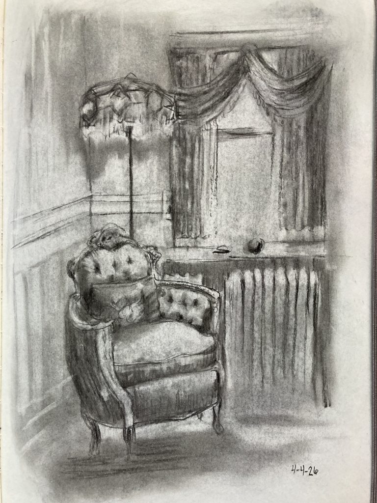 9″x12″, charcoal and white chalk on Stonehenge Kraft Paper