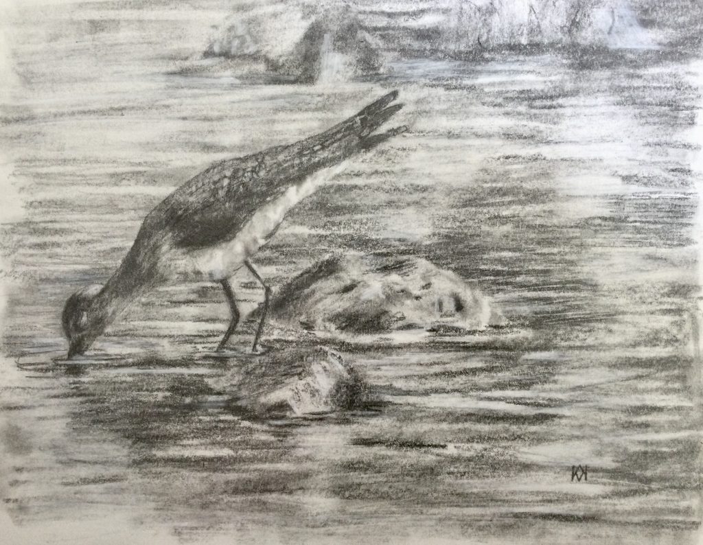 I sprayed several coats of Spectrafix Final Fixative and then poured Natural Glass Varnish over it. When it comes to pouring, I’m a novice. I found it’s easier to tape the panel to a plastic cup so I can hold it and tilt it this way and that while pouring the varnish. I catch the excess in a container. This method creates a fairly thick layer, and it takes about five or six hours to dry. I always find some dust particles in the surface, but if I truly minded, I’d sand it and do another coat.