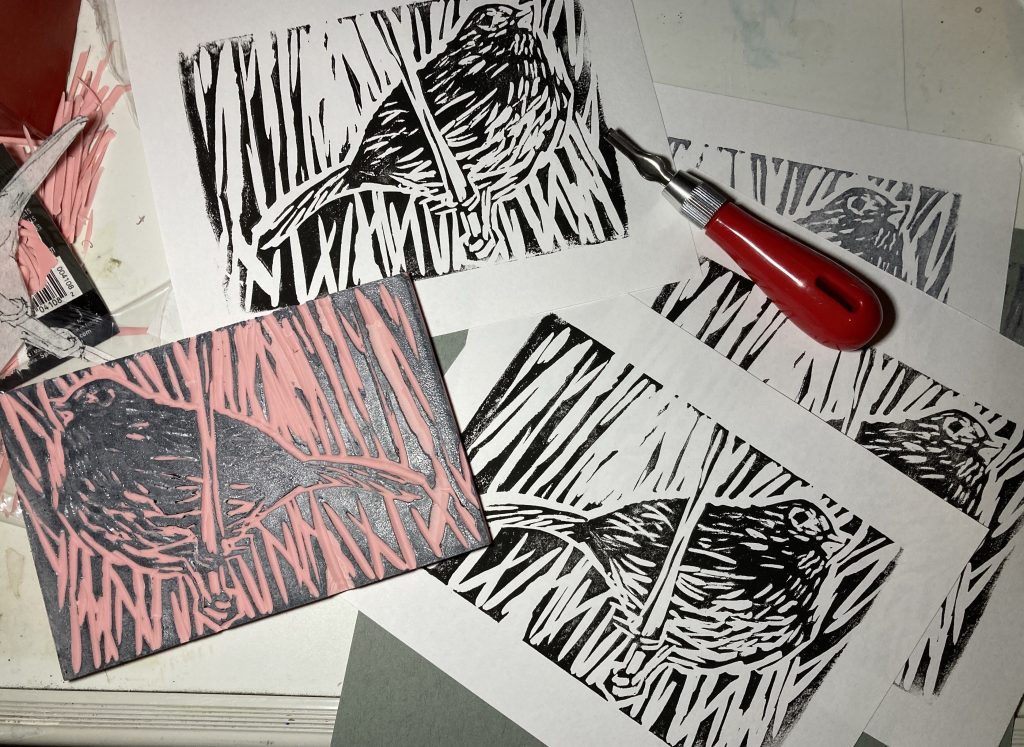 Once again, I drew a bird on Claybord using ink (mostly fountain pens and Faber Castell Pitt Pens) and scratchboard techniques. This time, it’s an American Tree Sparrow, one of my favorite backyard birds.