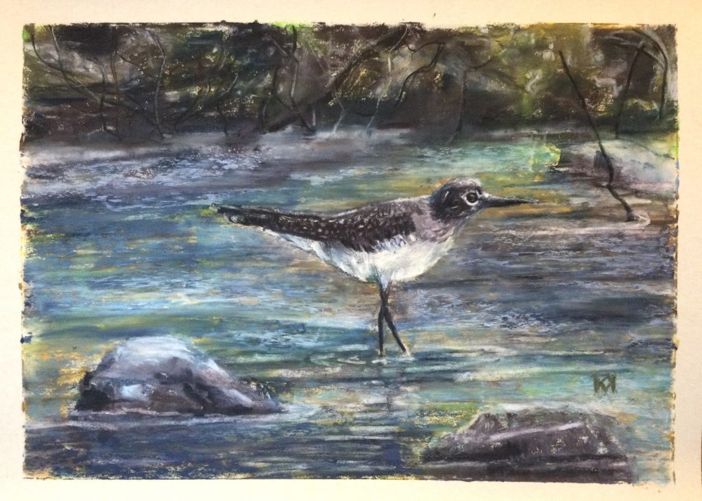 I practiced sketching oranges. With some, I used the chroma color first, with others a layer of white. The one I liked the best used three different but related colors that overlapped. The color was more convincing, and the texture was the best of the three (bottom right).