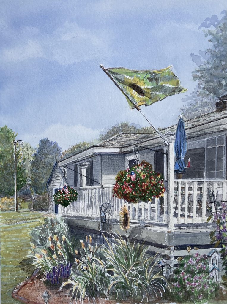 I’m still working on this seasonal piece every few months. I get one season nearly finished and then stop, wait a few months for the season to change, and partly complete the next. I decided I’ll wait until the end of summer before filling in the details that will connect it all together.