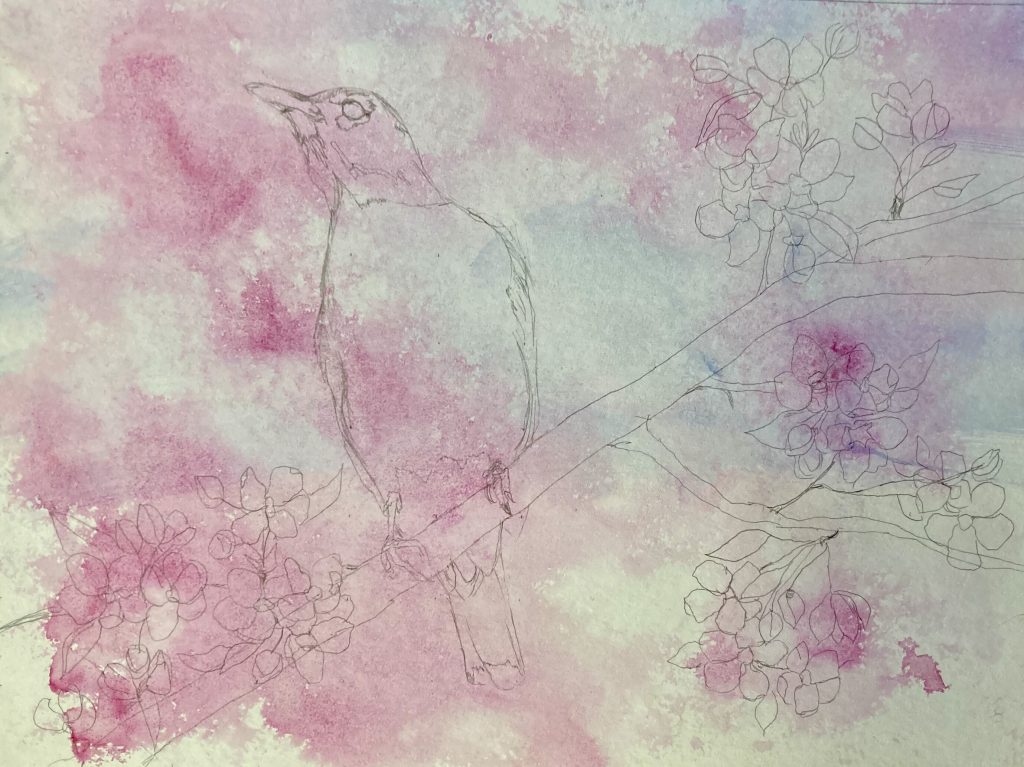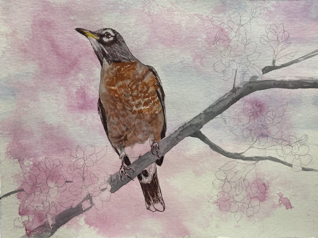 Not my best work, but I’m experimenting with graphite. It can cover well, lift nicely, create a moody atmosphere, has a great range in value, etc. Here, I’m doing some sketches that take some thought and some time, but I still rush through much of them as shown by the strange trees here and there. Some of these are tutorials from Smoothie77’s Patreon channel, and some are from my own reference photos, like the one directly below. Lighting makes a huge difference in how photos turn out, so some are on the blue side and others on the warm, yellow side, but they’re all done with the same pencils on the same paper, Canson Fluid multimedia (which I wouldn’t purchase again for graphite).
