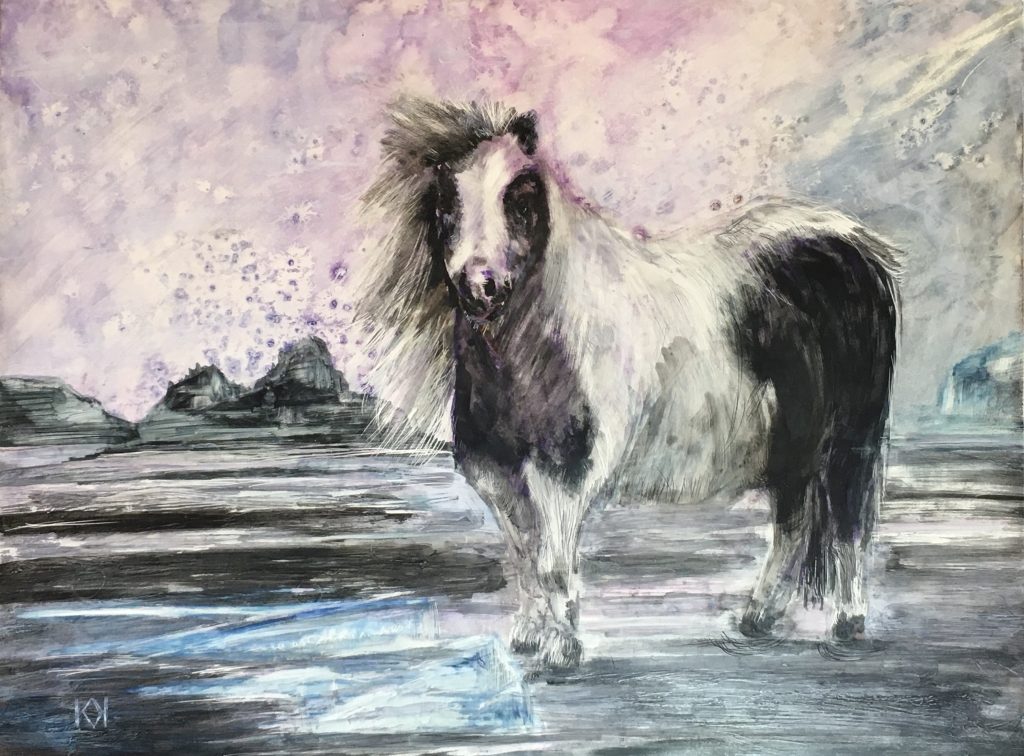 I’m pretty enamored with markers, but I haven’t yet used them without also using a brush with some diluted paint. For the pony, I used Liquitex acrylic gouache for the background and shadows. Using a brush gives an expressive feeling I haven’t yet figured out how to achieve with just a marker.